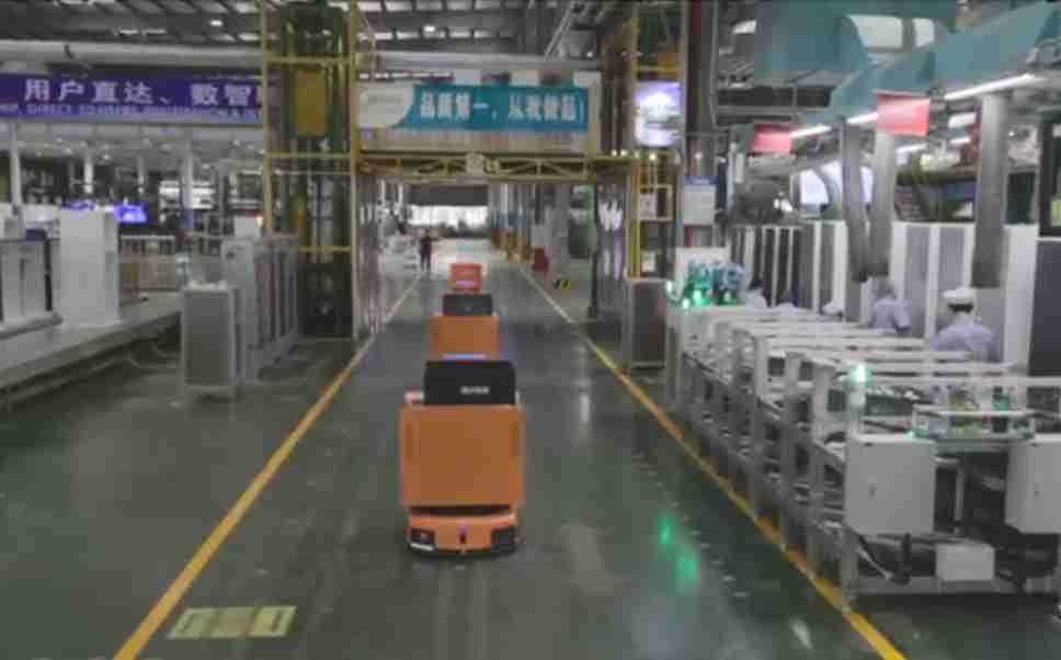 为车载冰箱物流配送打造的智能解决方案,,,包含产中物流通过潜伏举升AMR搬运至线边,,,,产后成品物流智能仓储,,,,流程包含产中物流智能齐套入库,,,,线边安灯叫料AMR智能配送至线边,,,成品入库、、、出库,,,通过无人堆高车机器人,,智能仓储管理替代人工作业管理,,,实现更高存储、、、更高效率、、、、更具柔性化的解决方案。。。